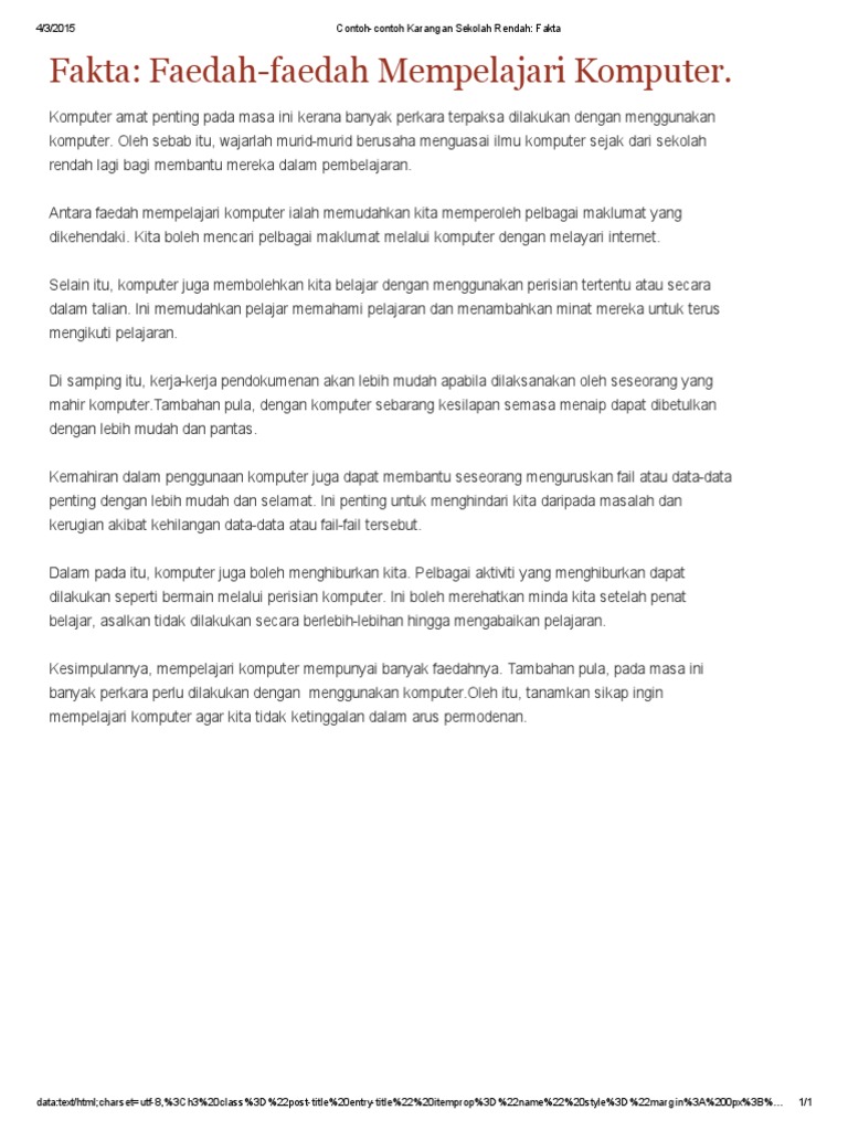 Contoh Karangan Fakta Sekolah Rendah - Mengatasi masalah kenakalan remaja di era modern 1.. Upsr bahasa melayu sjkc karangan berformat: Oleh karangan ciri ciri pelajar cemerlang antara karangan yang agak popular tidak kiralah di sekolah rendah, sekolah menegngah, upsr, pt3. Makanan khas indonesia yang terbuat dari fermentasi kacang. Setiap pelajar diwajibkan menyertai aktiviti sukan di sekolah. Contoh karangan deskripsi tentang sekolah baruku.